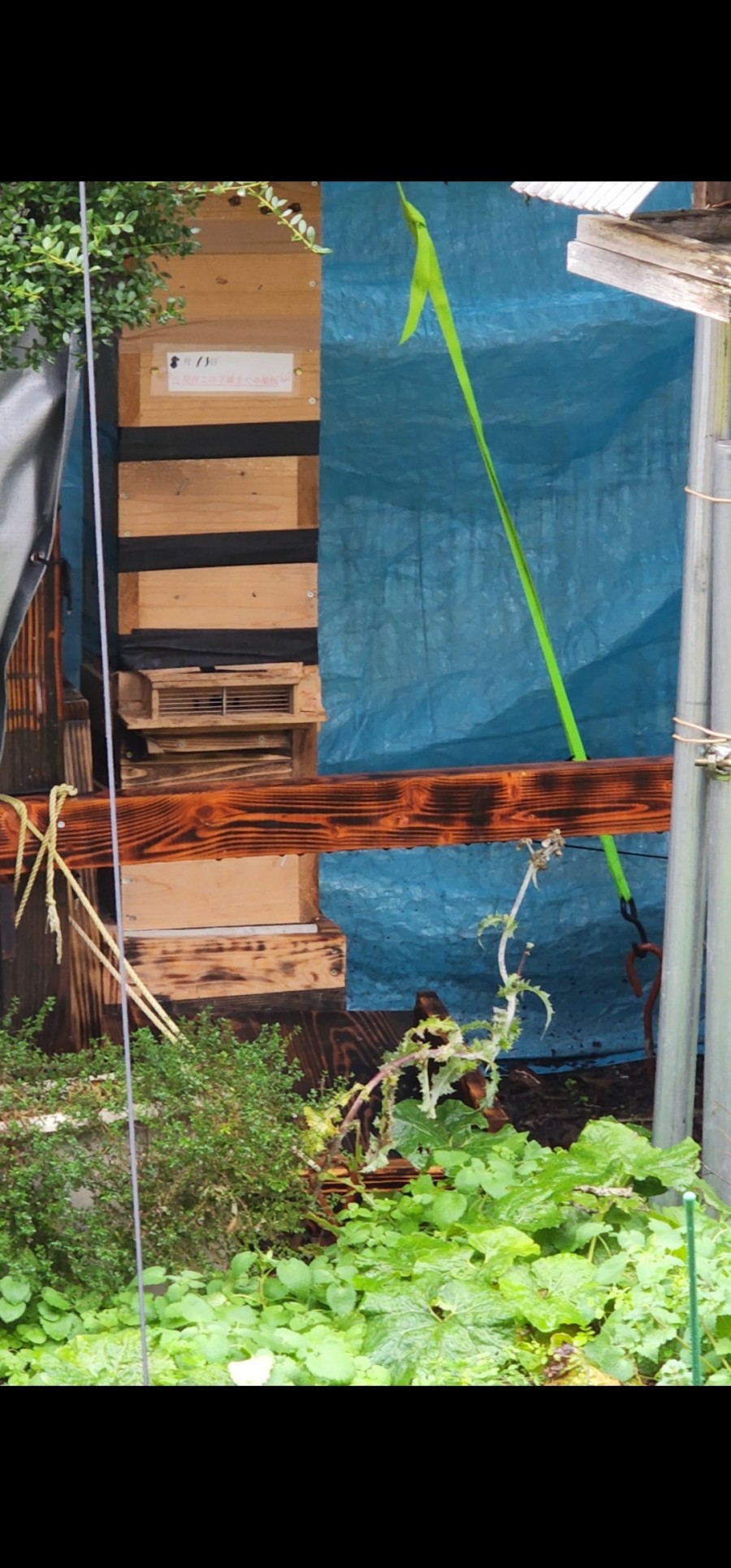 青いシートは夏から掛けて有ります。巣箱の裏はお隣なので(笑)