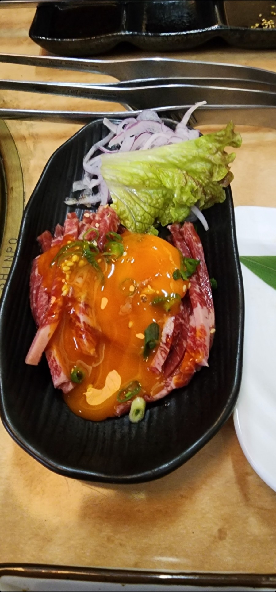 もつ鍋にユッケ良いですね(⌒▽⌒)