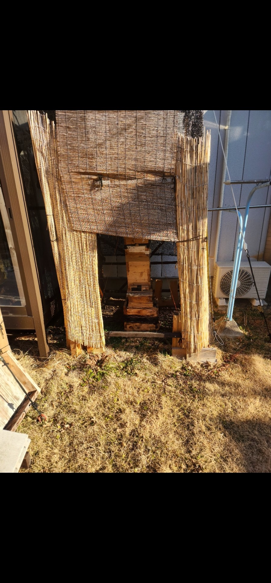 上は我が家で一番の強群 雪有りません 我が家はすこーし高台?なので風が凄いので周りに風よけをして有りますが箱自身には防寒して有りません。 でも健在ですm(__)m