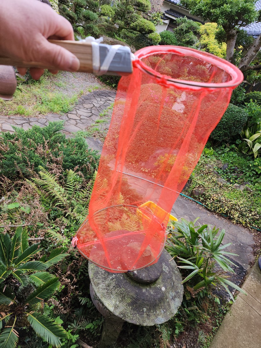 先ず、捕獲網です。柄と脱着できるようになっています。取り込み口と、少し大きめのリングを底部にうけました。