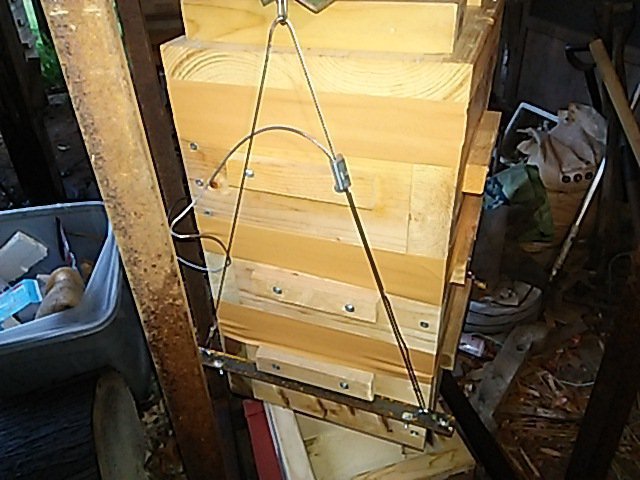 今まで動画をいろいろと見せてもらっていますがこの巣箱持ち上げ機はbetterだと思います。ラチエットハンドルを使用している点がにくいです。詳細部分が解かりませんので更に具体的に動画で教えていただければ幸いです