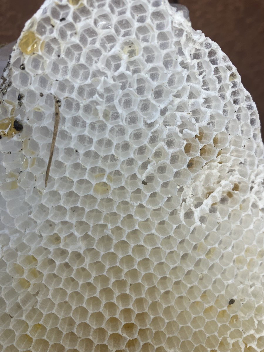 添付の巣脾片からは、花粉も貯められいい調子に見えるので、過剰給餌で産卵圏を圧迫してしまい、蜂数に対してそれに見合った育児部ののびしろがない危機感でも抱いたのですかね!?
