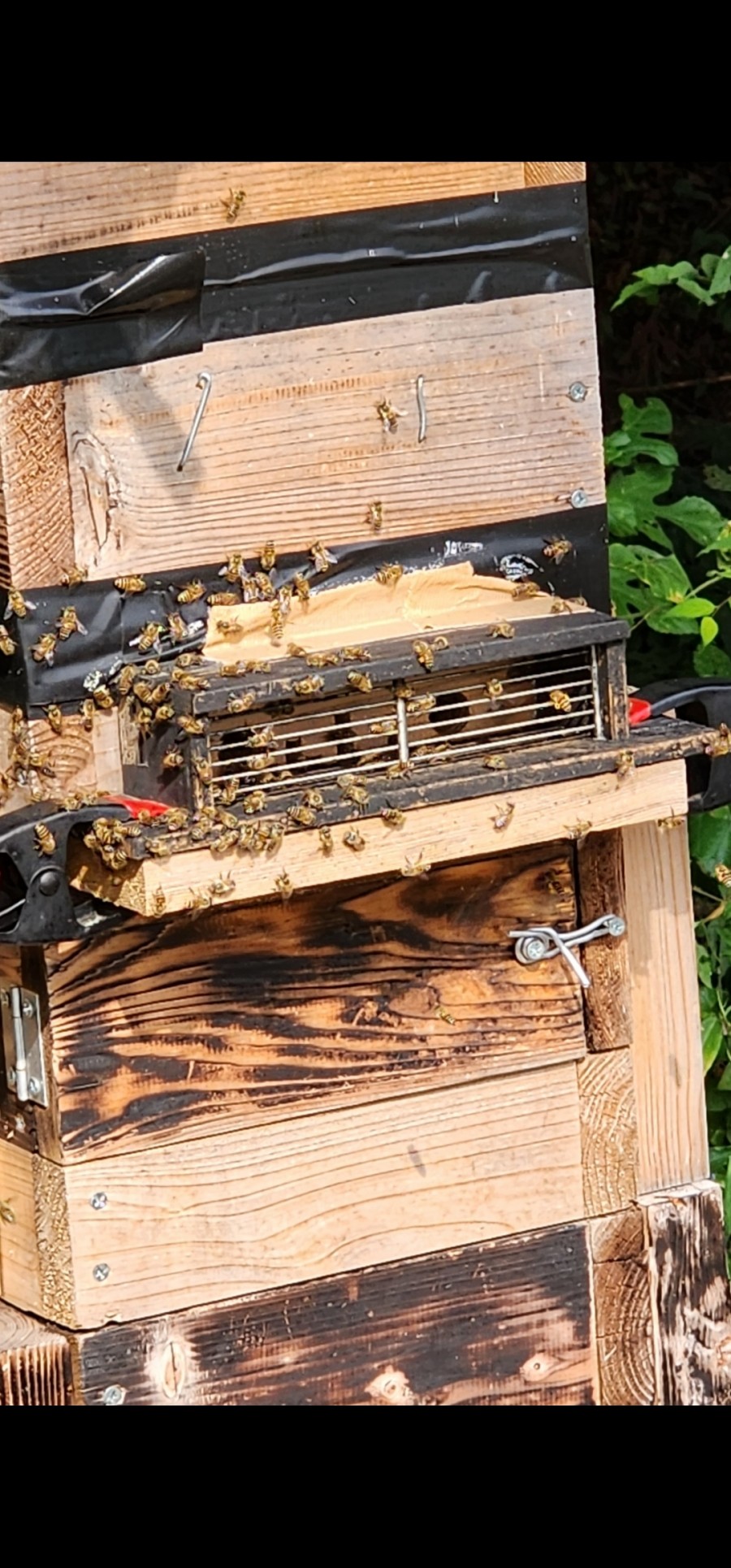 みるくさん こんにちは。 格子状の巣門が付けて有るんで中には入れないのですがイヤですよねー(笑) みるくさんの群は逃去が有ったんですね。お見舞い申し上げますm(__)m 今日ペッタンを4枚増強して来ました(笑)
