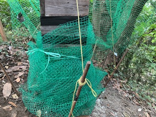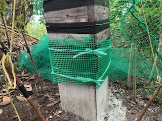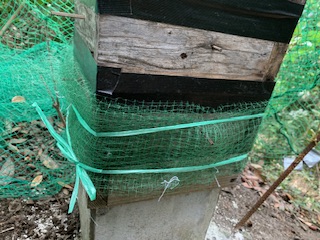 斜面巣箱の基礎はコンクリート施工で、継箱間はテープで防御して、今回の複数ネットを拝見しまして、お手本のような管理人さんです。