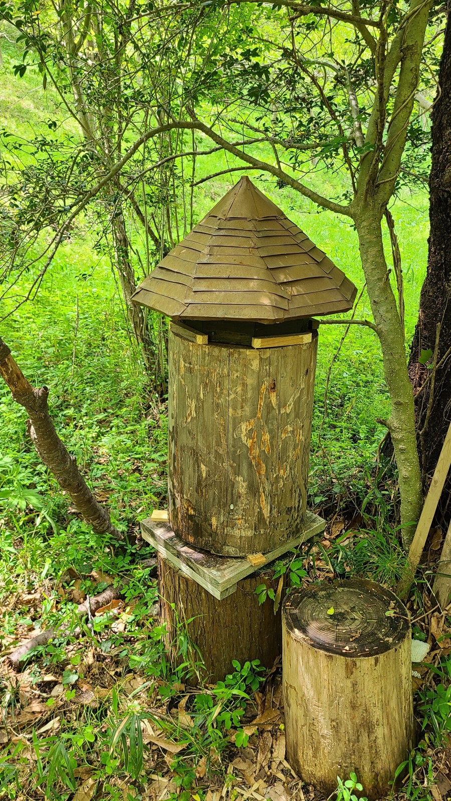 あつまっち 愛蜂家さん おはようございますm(__)m コメントならびに素敵な巣箱のご紹介ありがとうございます。ムーミンハウス、素敵なネーミングです。 そして銅拭きの屋根凝ってますね。銅って時間がたてばたつ程味が出ますよね。 千葉県と言う事なので今度そちら方面に行ったら実物を拝見させて下さいませm(__)mコロナ以来移動が少なくなりましたが千葉県の黒い温泉が大好きでコロナ前に良く行っていました。ミツバチの飼育は私より大先輩ですね。飼育のコツを今度ご指導下さいませm(__)m 銅拭き屋根は私見たいな不器用には無理みたいです(笑) 落ち着いたら杉皮で挑戦したいですm(__)m コメントありがとうございました。