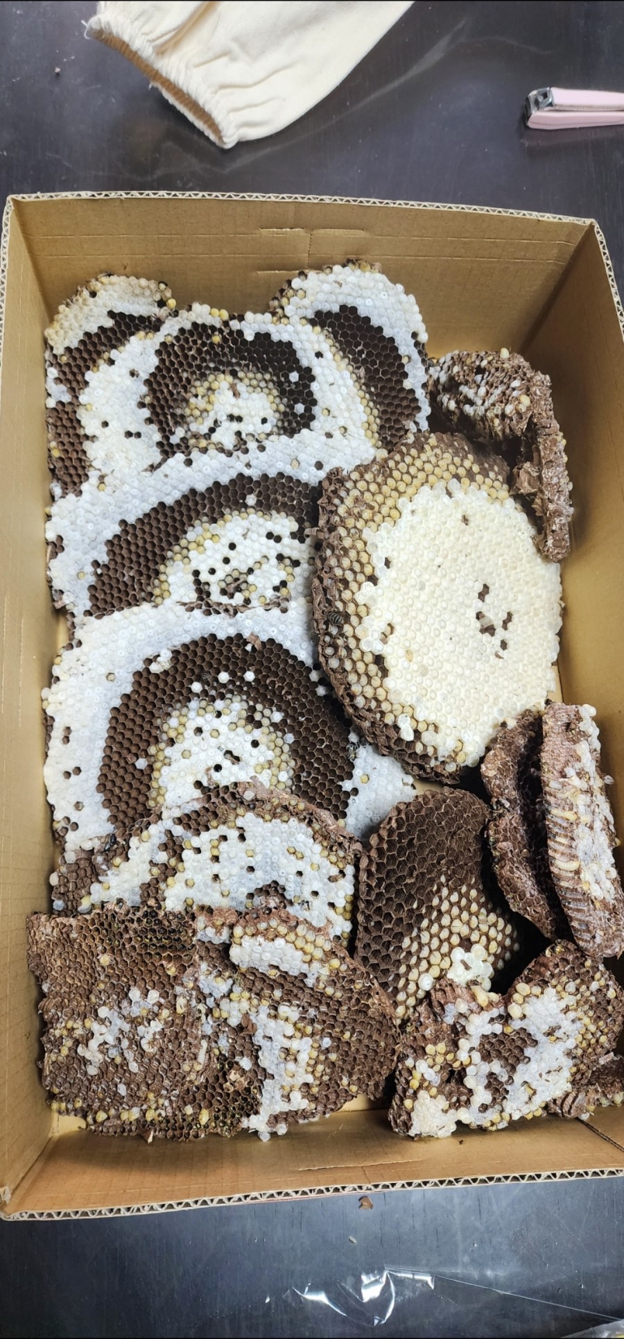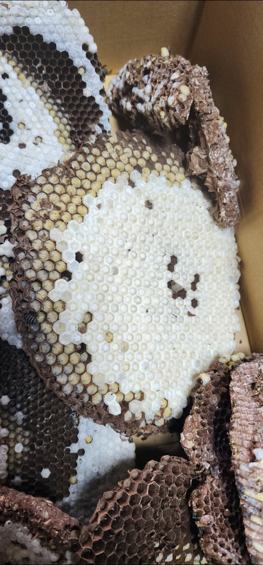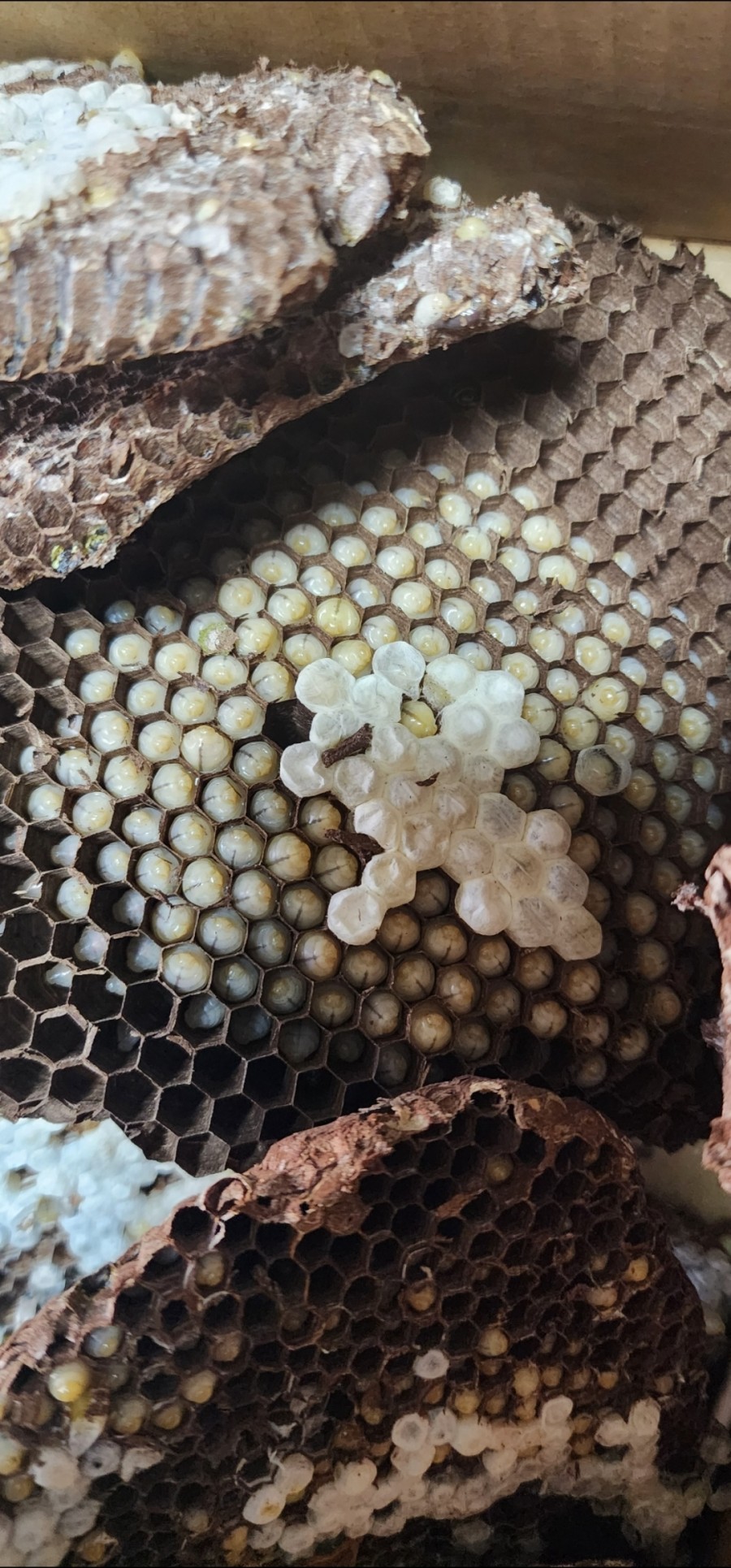 今年はキイロスズメバチの巣も小さい個体が多いです。地域差でしょうか❓️ ミツバチへのオオスズメバチの訪問ももう我が家では有りません。 今年も網は架けませんでした。 ペッタンに張り付いたオオスズメハチは40ほどでした。