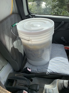 先日 彩蜜したものを タレミツで コンポスターに入れ 車中に置き さらに ビニール袋も 被せていますが!数日だったので もう ほとんど垂れませんね。