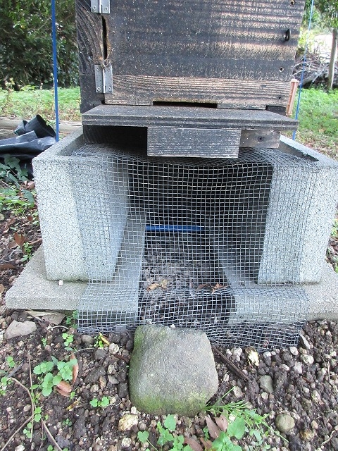 入居時には底板をブロックの上に敷いています。閉鎖状態にするためで、1ヶ月後には底板を撤去します。