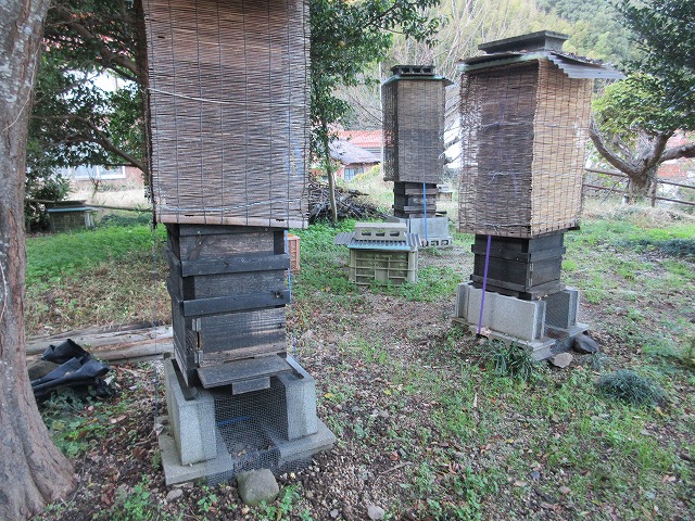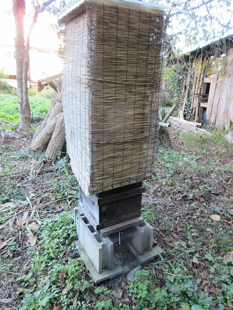 日当たりの悪い場所にある飼育群を冬支度しています。