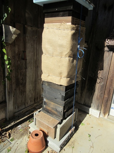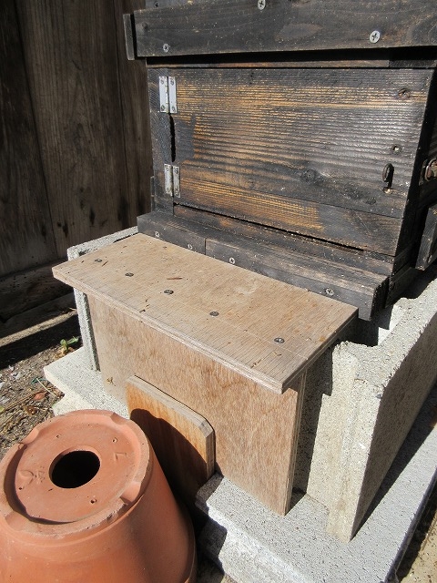 更に土台ブロックの金網を外してコンパネ板で塞ぎました。この群の冬支度はこれで終了。来年3月まで観察に行かないだろうな・・・。