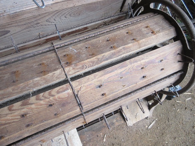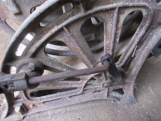 天気が悪いので屋内作業を優先しました。 ペダルが2つある2馬力用ですね。残念ですが、山の神は脱穀のように埃にまみれる作業を拒否するでしょうね・・・。