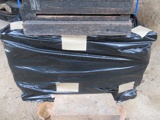 2ヶ所目の蜂場:此処は雪深いので黒マルチで土台ブロックを覆います。