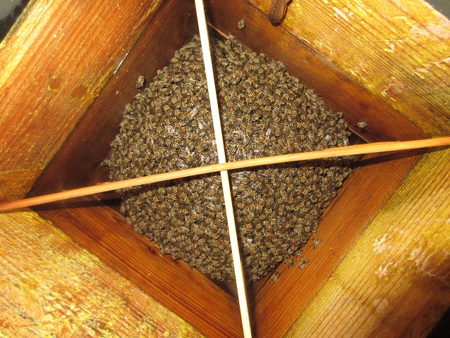 日本ミツバチは森林組合の友人から2012年巣蜜をいただいたのと山荘の薪小屋に日本ミツバチがたくさん来ていたので何か自分でも知らないうちにやっていました。宜しくお...