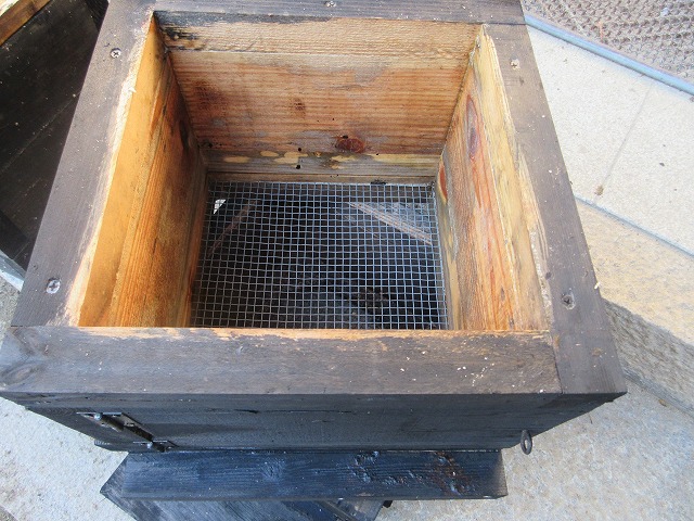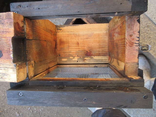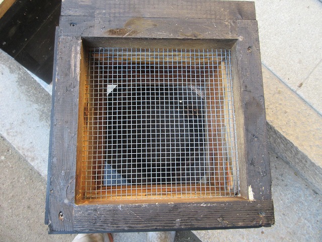 底板はなく、7mm角の金網が張ってあります。オオスズメバチの侵入を防ぐためです。