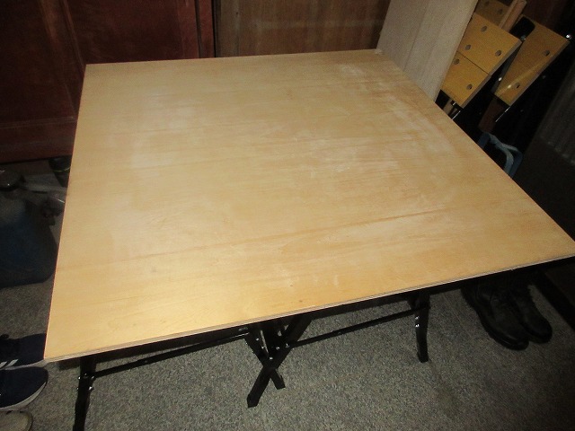 最近は玄関でうどんやソバを手打ちしています。簡易な作業台を設置します。