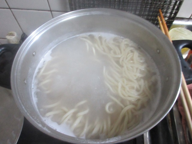 そうこうしていると姉さん達が来たので、うどんを半分渡しておきました。ついでにソバも手打ちしました。