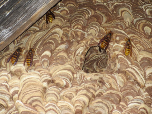 キイロスズメバチの巣は驚きました。大きさもさることながら、働き蜂がまだいたのと道路脇なのに駆除されていなかった事などです。