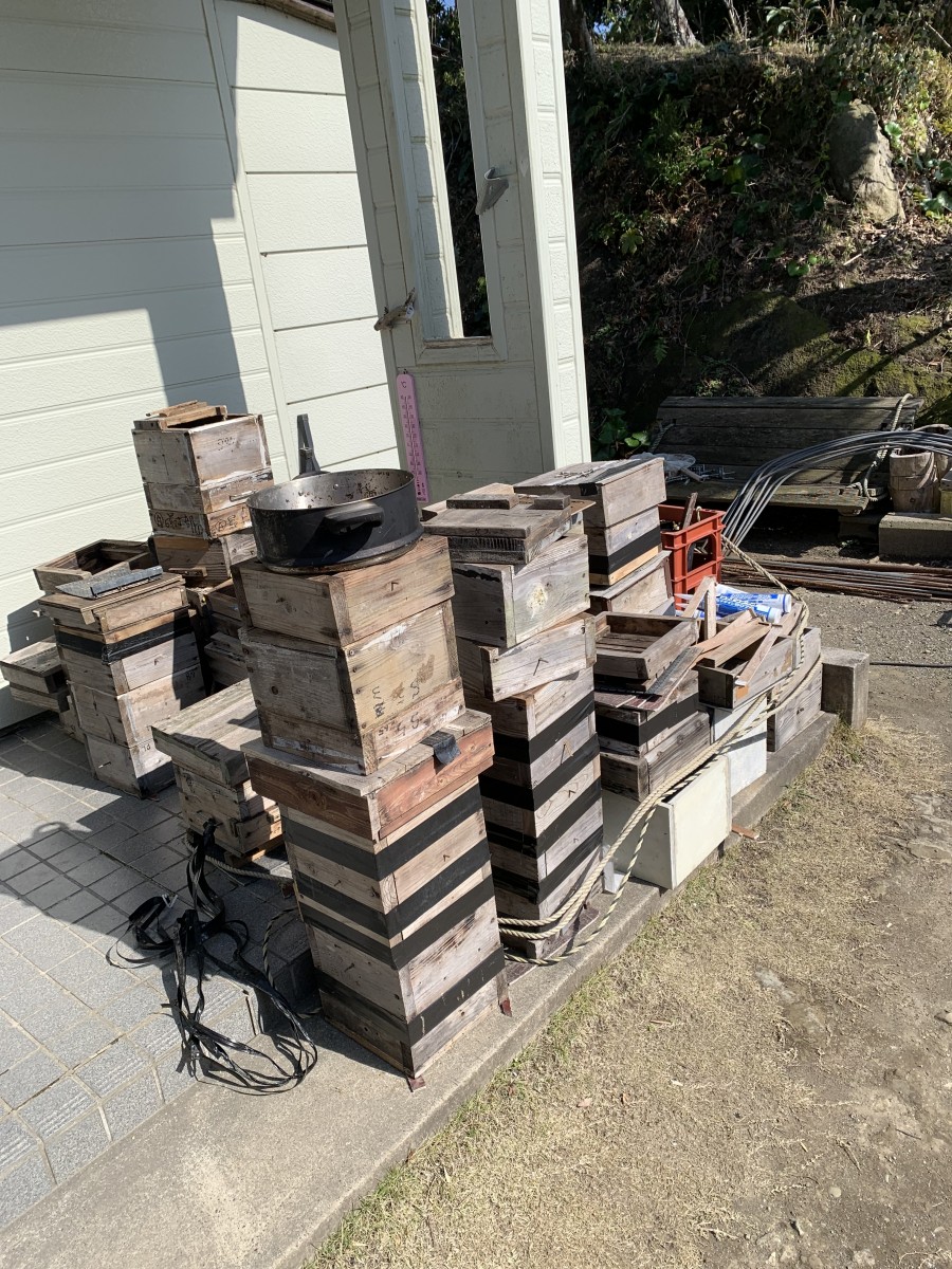来週は 術後の検査があり 禁止事項が 幾つ解除されるか楽しみです。 今日はミツロウ作り 今 三回目の竈焚き 周りを はっちゃんが飛び交います。回収した待箱にも、出たり入ったり、?