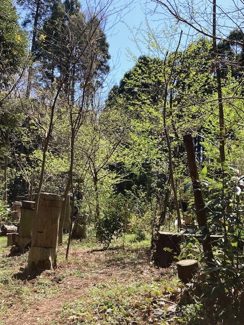 晴れの日はウキウキ! 分蜂は師匠の群がまだ続くかどうかの見回り。