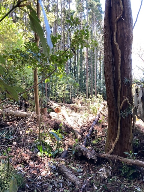 生き物たちの森の奥へチェンソーをしまいに行って最後の1枚ぱちり。