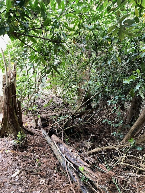 頭上を杉とウワミズザクラの倒木が来るものを見張っているようだ。