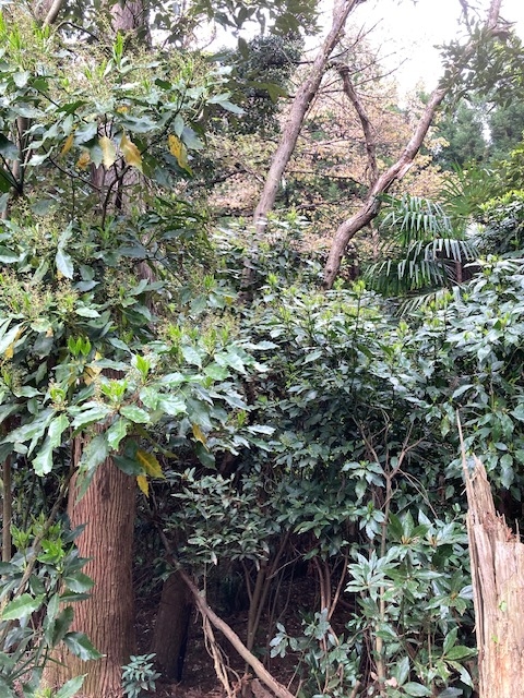 シークレット・ゲートの右側。アオキが多い。