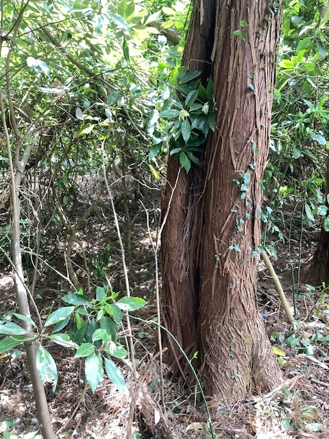 キズタは南のお隣さんの200本以上の杉の木に絡みついている。