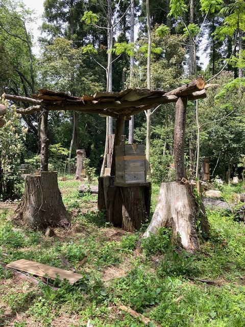 内径の大きな重箱を3段、みつばちレストランから生き物たちの森へ持ってきてしまったので、自然入居があるやもしれないから、とにかく設置しておこう。