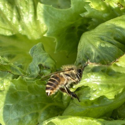 R6.4〜 日本ミツバチを知り合いから譲っていただき、大切に大切に、可愛がっています。 初心者ですが、よろしくお願いします。 写真は、レタスを齧っていたミツバ...