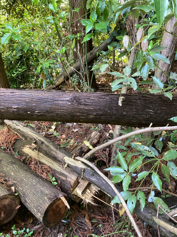 次は先日から整備している東のお隣さんから生き物たちの森へ抜けられるように樹木の伐根。