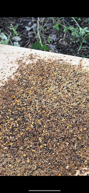 本日久しぶりに接近、足元の板には巣屑と糞がたくさん…しかもなんか黄色い個体が複数いる?