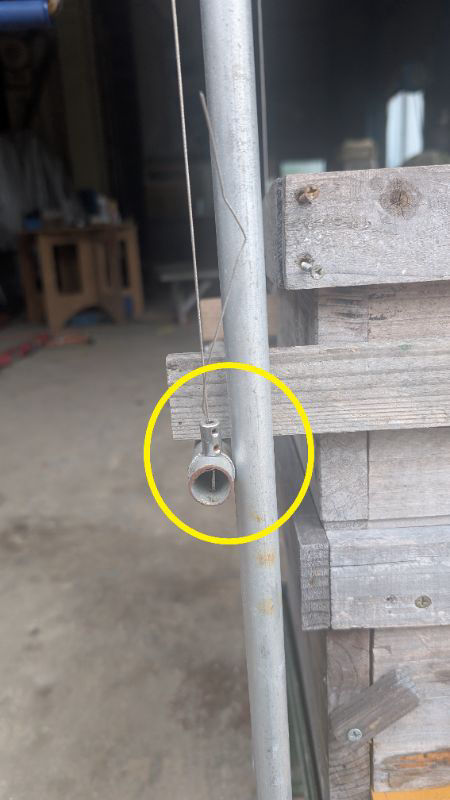 上昇の時巣箱にワイヤーが引っ掛かることが有ったので、支柱の外側に移動しました。