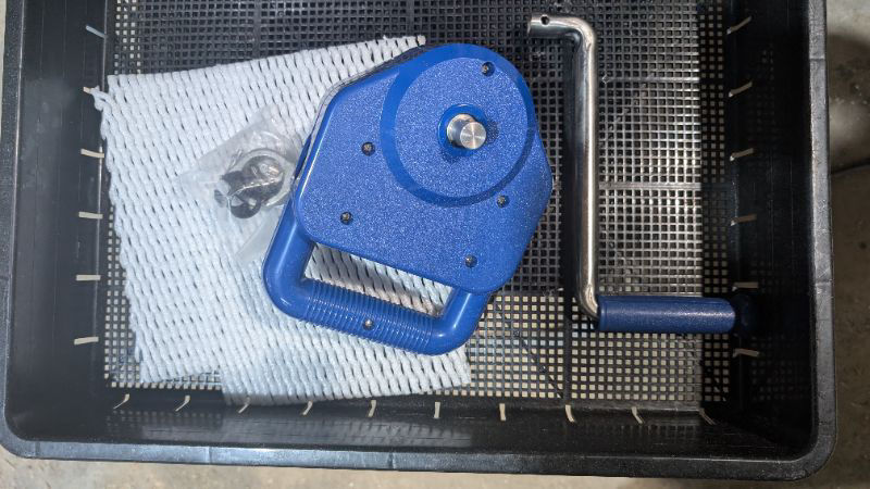 身近にありました、ビニールハウスに使っている巻き上げ機です。