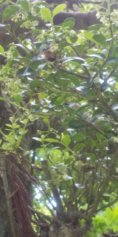ビーチパラソルのようなイヌツゲ マルハナバチか?