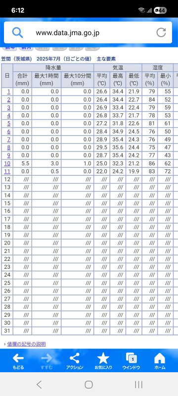先程、気になって今週の笠間市の気温を見てみたら↓