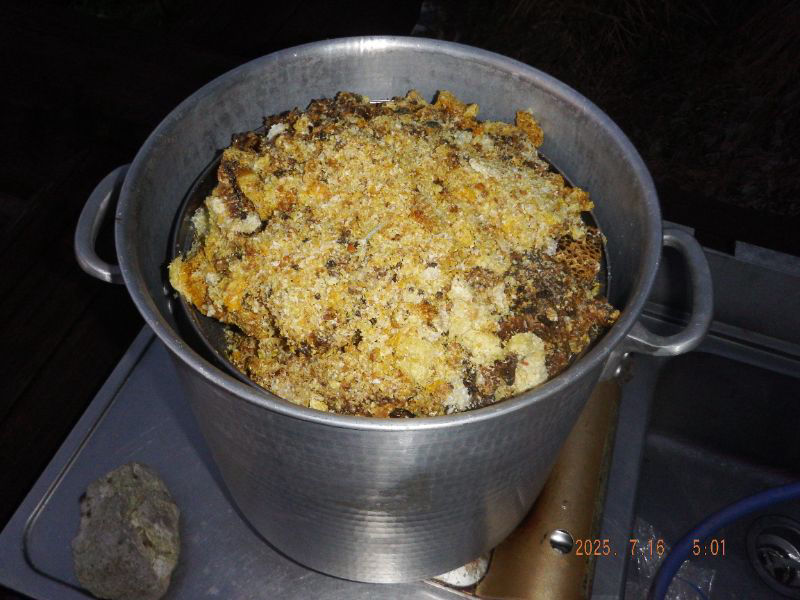 四国から引っ越して早いもので今夏には12 年目を迎えました。 冬越え2年目2群、1年目1群に2025年、春分蜂を強制捕獲群3群で6群となりました。 (1群消滅...