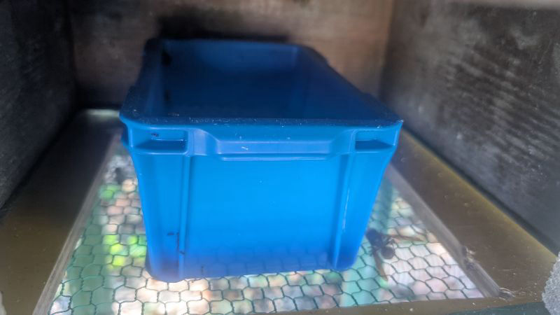 うちの群はこの二週間ほど、外仕事はほぼ夏休み状態ですが、巣箱の中ではブンブン大きな音がしています。フローハイブの蜜が少しずつ減っていますが、暑い時期に能率の悪い仕事をしたくないのはミツバチも一緒だろうと思って、ただ見守っています。