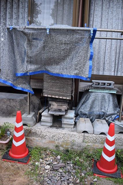 7段重箱群は、春分蜂で5回は分蜂しつつ、その後に夏分蜂したようで、更に7/25に部分巣落ちをしたので、家主さん(蜂友)と共に様子見していました。