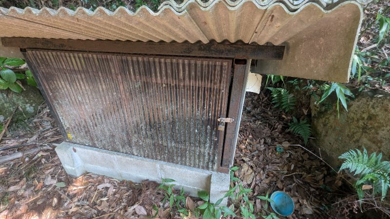 この水源は私のお爺さんが明治時代に石積の井戸を作り300m鉄管を埋設家まで引いたそうです。