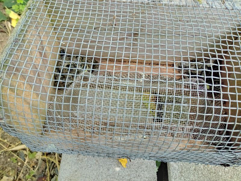 今数匹のオオスズメバチが入って居るのですが、入るとこのように網に張り付いて動かなくなりますので、外しましたね。昨年福岡山荘跡地群:がオオスズメバチで逃居したので、又据えて見ようかとか思案中ですね。ミツバチの事だけの自分ですからね。自分は、面白くも何も無いですよね。疲れたのなら御免なさいね。お疲れ様でした。