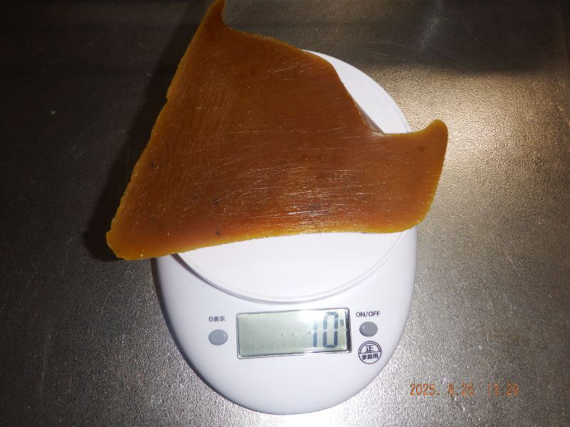 巣版が痩せていると蜜蝋も少ないですね。70gでしたね。