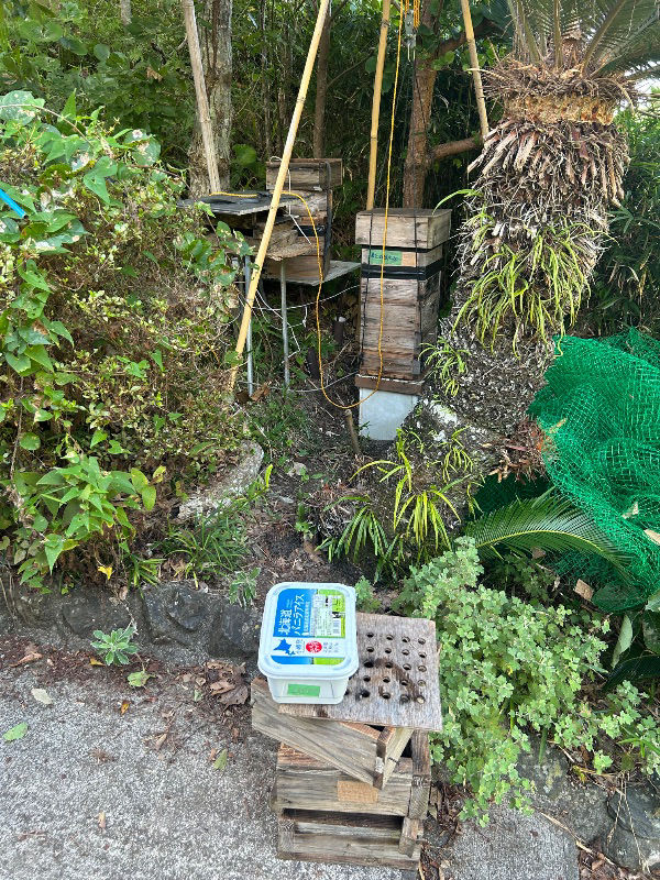 雨が降る前にいつもお世話になっているメガソーラの友達宅に野暮用で行きました、序にジャムおじいさんの蜂場近くのさつま芋畑群に給餌しました。
