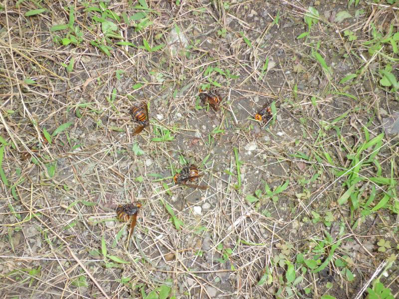 背中の十字は、王者の印!と覚えるオオスズメバチも、貼り付いて動けなくなっては、どうにもならないという事なんですね~。自然界の弱肉強食とは、本当に厳しいですね。
