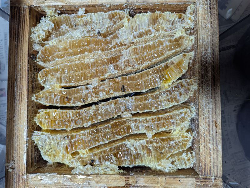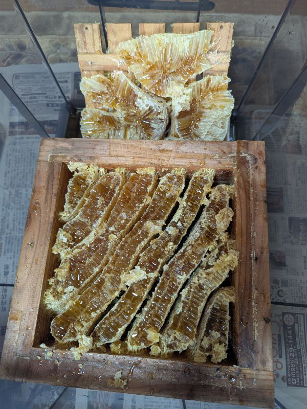 巣屑を置いておいてもほぼ垂れてこないので一回でスカスカになるまで採蜜出来てると思いますのでオススメですよぉ(ㅅ´ ˘ `)♪