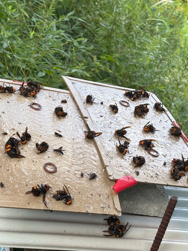 オオスズメバチを5匹も捕まえましたか、怖くて真似できません。