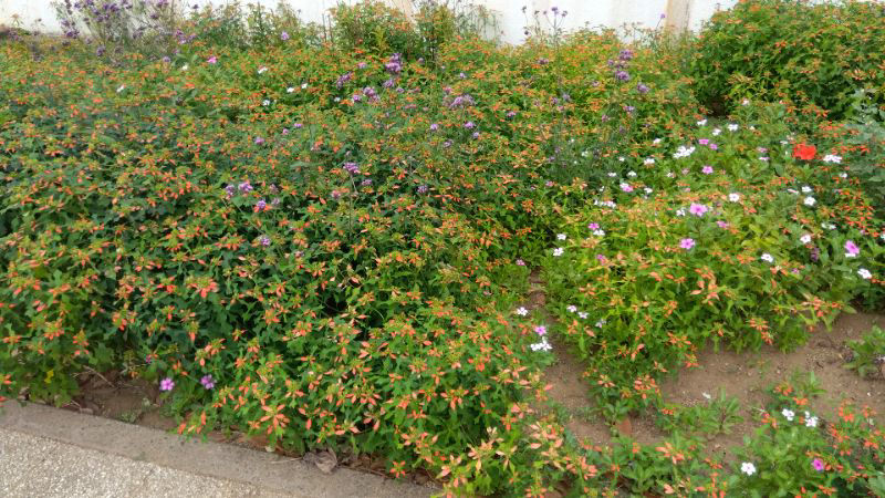 ⇩ 海抜80mとかの公園。葉が赤く、ショボい花にミッチーが来ている、数匹見えた。