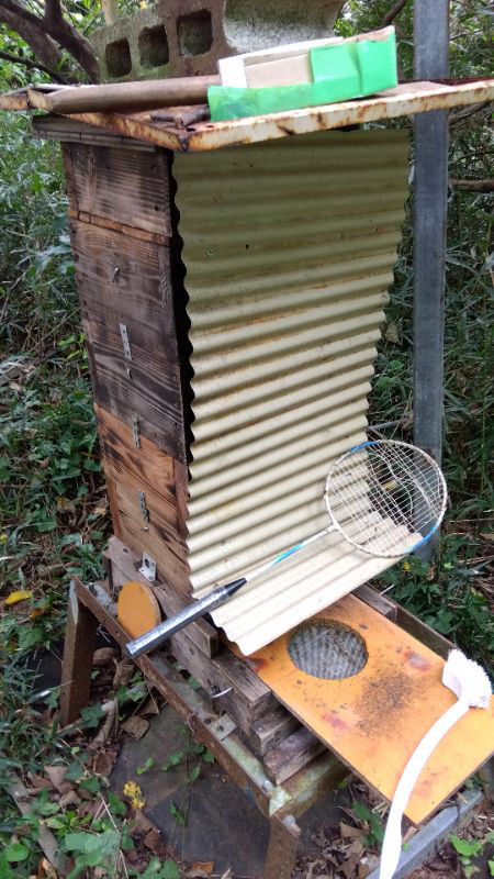 AM天気良し、気温並み、巡回、スズメ蜂は特には来てない。柿木群、常なら出入り、入口付近のたむろ数匹以上、然るに10分程観察するに姿見えない。屋根上のペッタン紙にも特にスズメ無し。ちょいと心配、底から内検する。