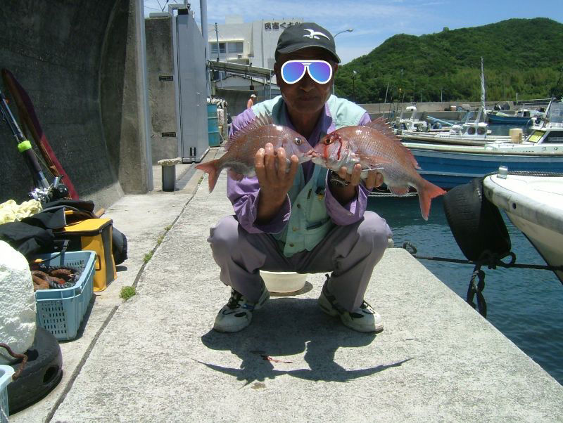 cmdiverさん おはよーさん、 真鯛が2匹も⁉️ 背びれが!ピーんと 張っています。 カッコいいなあ。モリヒロクンも釣ってみたいけど? めっぽう船に弱くて🚢、必ず 戻してしまうのですよねー(汚いなー)