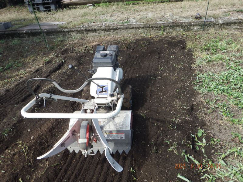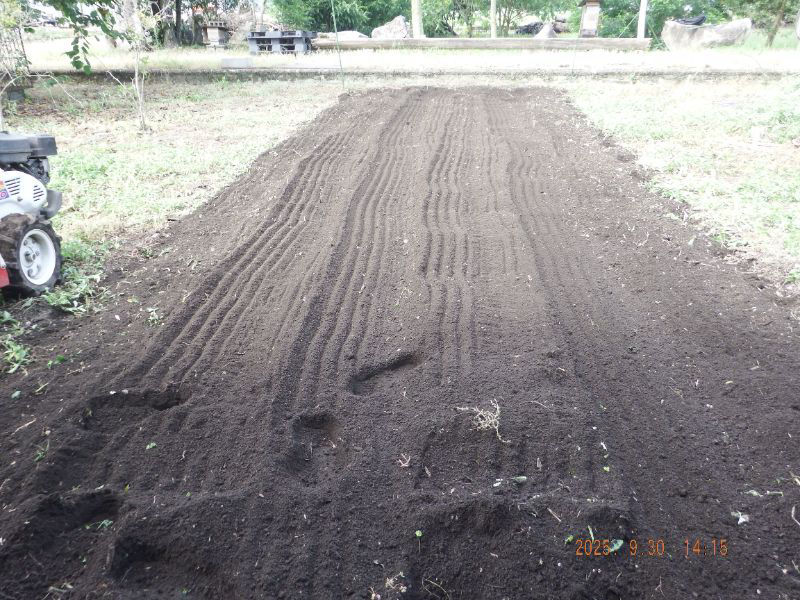 大根を植えるつもりですが、今3回目の耕しですね。後は種子を蒔く前に剝きますね。