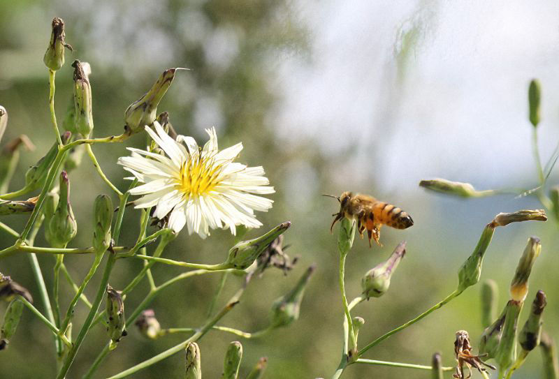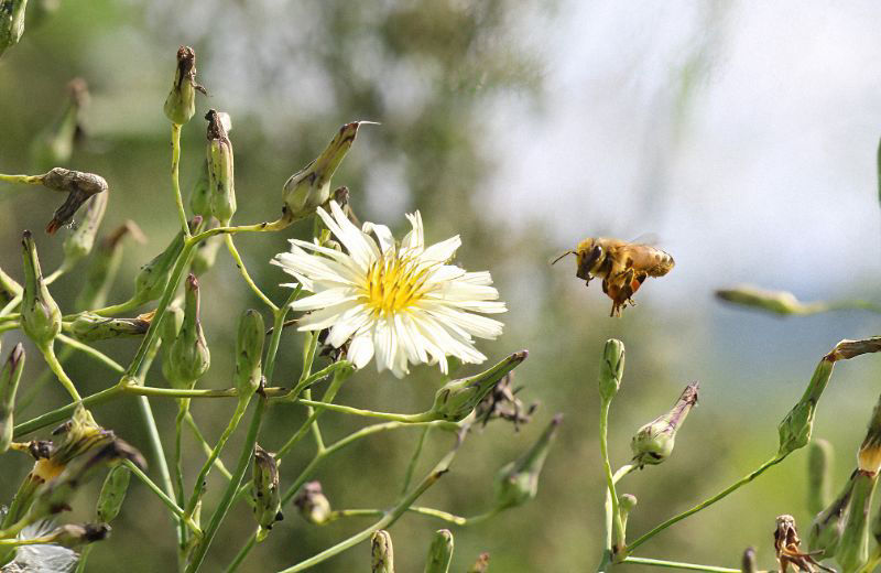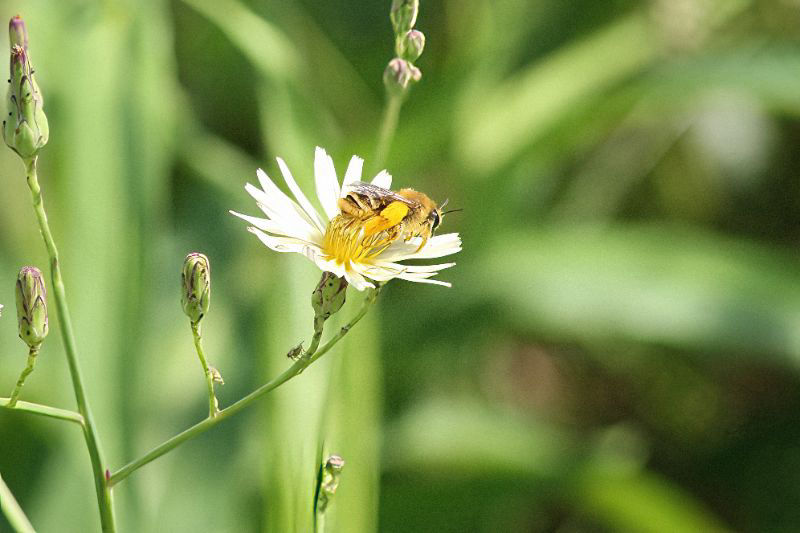 同じ西洋ミツバチですね。花はアキノノゲシですね。